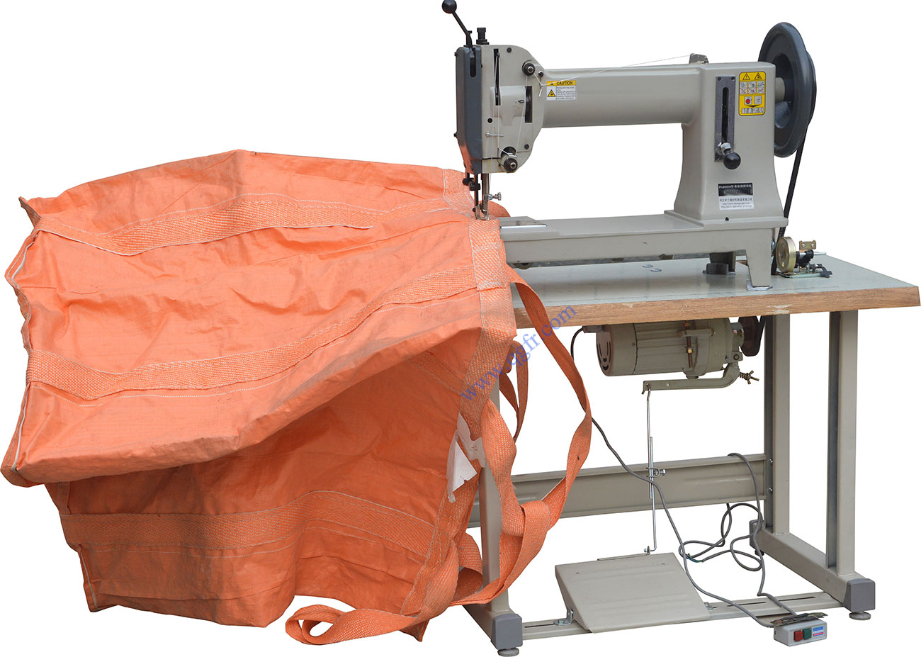 FGB6800 FIBC sewing machine adopts single-needle shuttle hook to form double-thread lockstitch. It has lifting feeder and alternating presser foot. Under any stitch length within the rated scope, this structure can ensure that the upper layer and lower layer don't shift when sewing lubricating and viscous materials and extra long products and make the product neat with beautiful stitch. The link take-up mechanism improves the spindle speed and reduces noise, thus ensuring the quality of the complete machine and extending the service life.