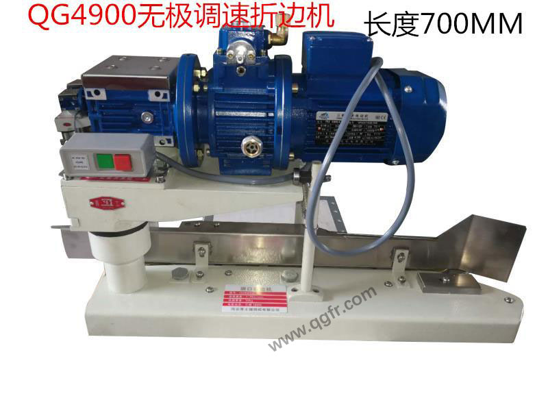 注意:我公司生产的袋子折边机标配电机为普通电机,通过调节皮带轮开口大小改变皮带轮的实际工作直径,进而达到改变折边机送袋速度的目的。客户可以根据需要配备无级调速电机,以方便折边机送袋速度的调节。亦按客户要求可配备防爆电机。
