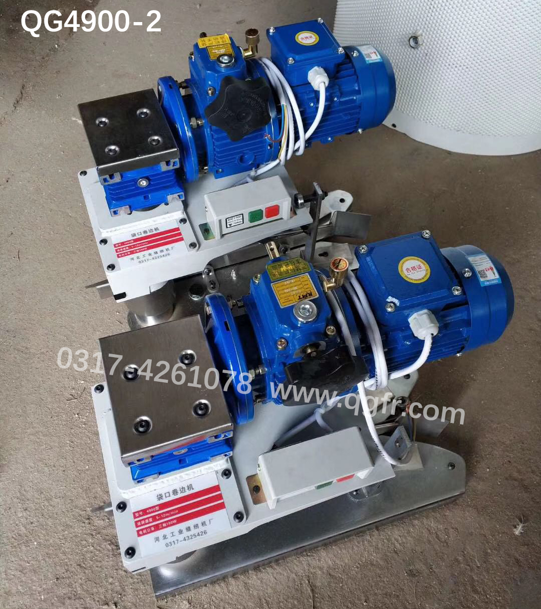 QG4900-2折边机(短款)是针对大米等行业适应短款输送机而设计的袋子折边机,输送机长度可降低至2米,实现包装袋送袋、袋口折边功能。